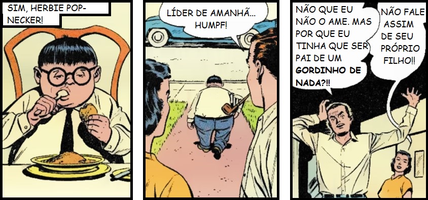 Herbie Popnecker apareceu pela primeira vez no gibi Forbidden Worlds # 73 em dezembro de 1958, criado por Richard E. Hughes (usando o pseudônimo "Shane O´Shea") e Ogden Whitney. Apesar de ser na aparência e comportamento a antítese de um super-herói, a lista de poderes do garoto desafia qualquer super-homem: